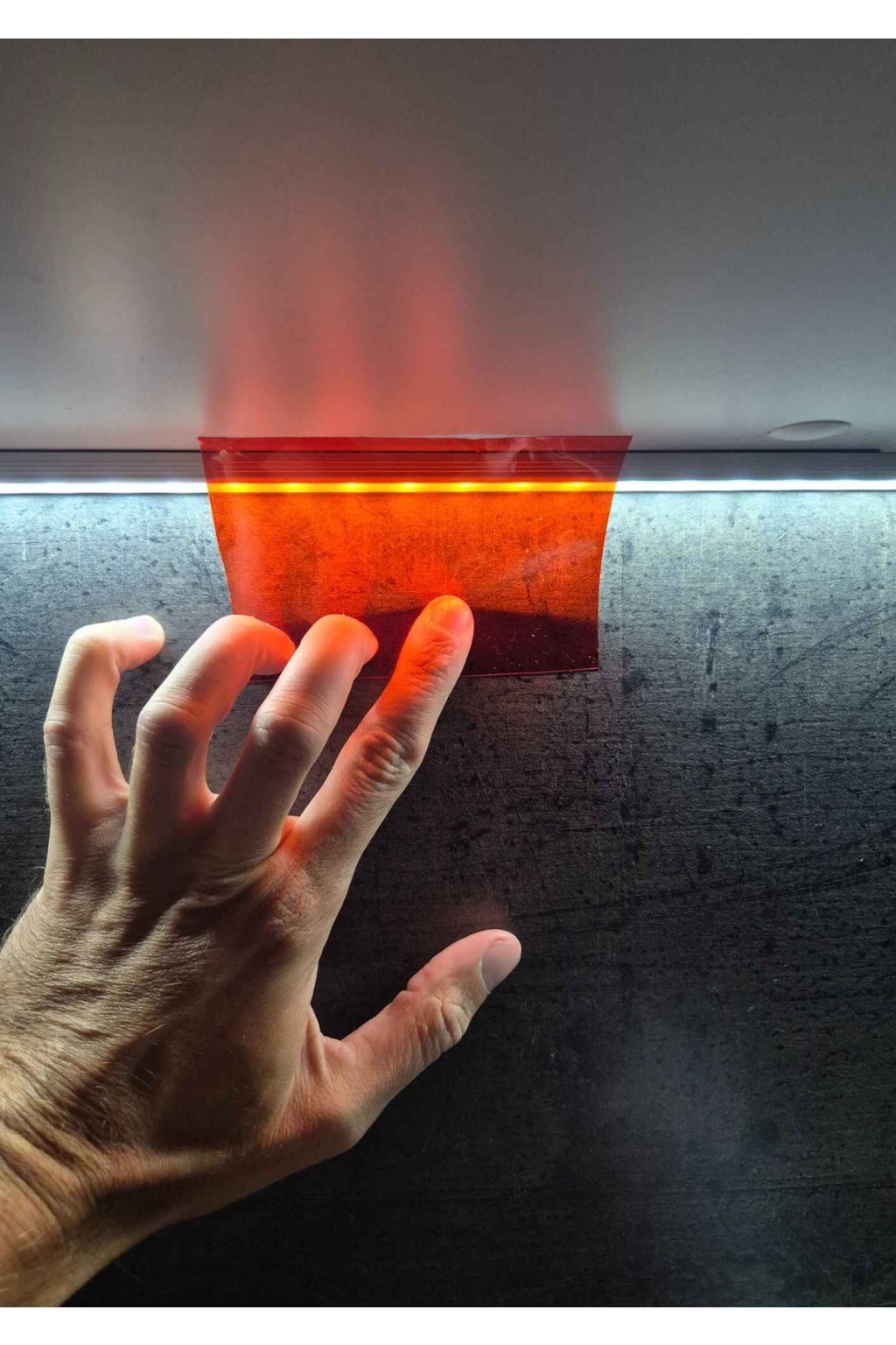 Už vás nebaví, když při přechodu kuchyní svítí ostré bílé LED světlo z lednice nebo sporáku? Naše červená samolepicí fólie Mitochondriak® o rozměru 30×25 cm blokuje modré i zelené světlo. Jednoduchá na použití – nalepíte ji například na LED v lednici, pračce nebo na jakékoli nežádoucí LED osvětlení a váš cirkadiánní rytmus a melatonin zůstanou chráněny!