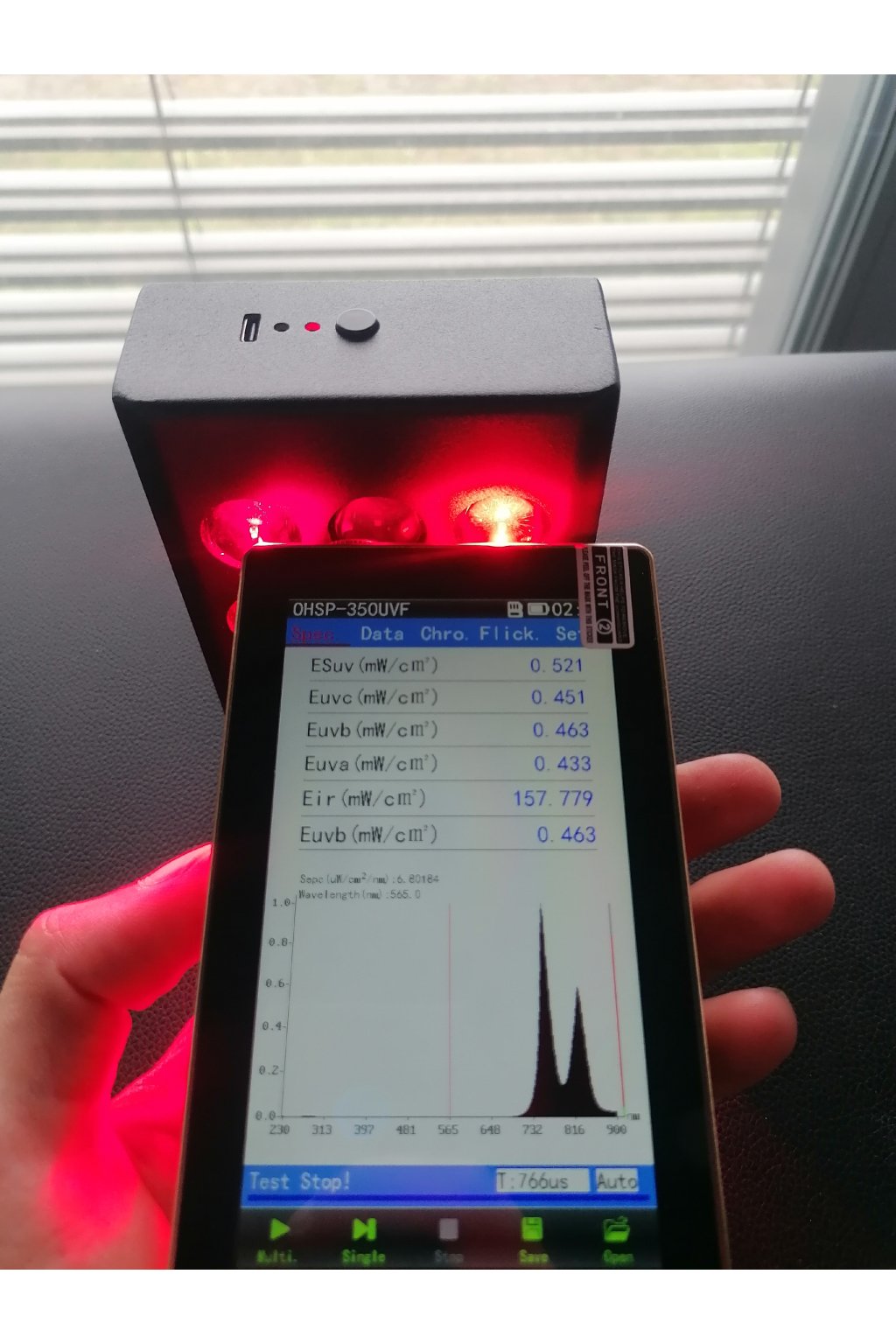 | Intenzita (spektromete): | 31 mW/cm2 |