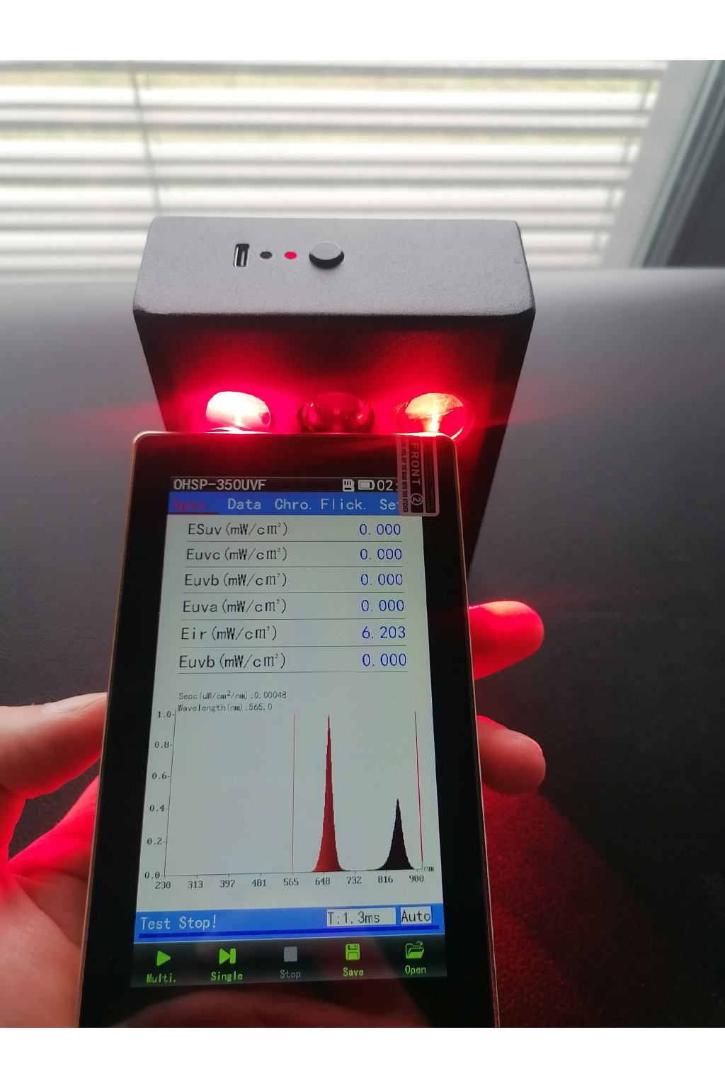 - Vlnové dĺžky: 630 nm, 670 nm, 760nm, 810 nm, 830 nm, 850 nm.